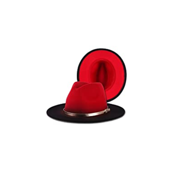 Black Red Fedora Hats for Women Men,Red Bottom Hat Wide Brim Fedora for Women,Two Tone Red Black Fedora
