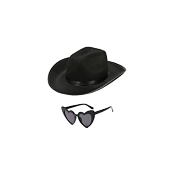 Black Cowgirl Hat Babe with Heart Sunglasses Western Cowboy Hats Nashville Bachelorette Party Bridal Wedding Shower (Black)
