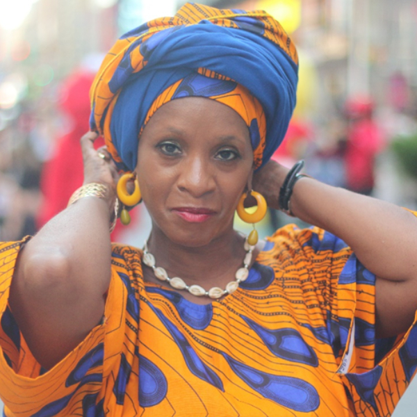 African Pants, yellow top, jacket with Butterfly Shades and yellow Turbin